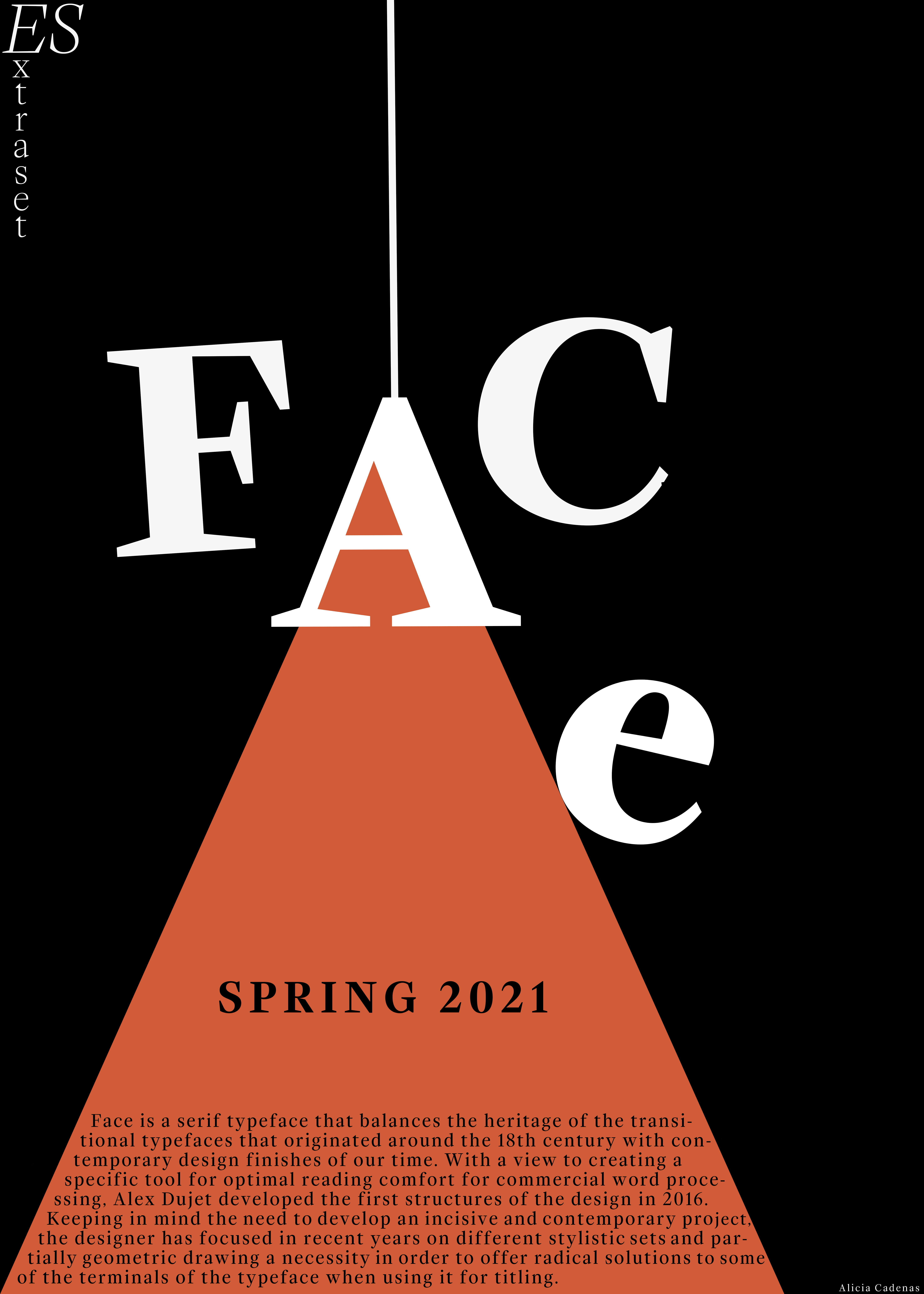 Typographic specimen based on the ES Face typeface by Extraset.